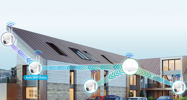The wireless outdoor camera with an industrial-grade control unit and 3-axis pan & tilt motors inside, you can control the IP camera to pan 355° and tilt 90° via App. The camera cover almost anywhere.